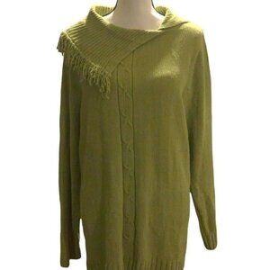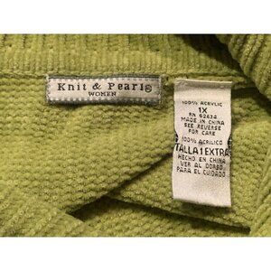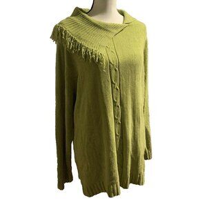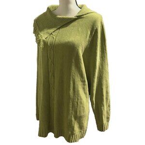 Knit & Pearl Women Cable Knit Sweater Size 1X Green Angel Flap Style Collar