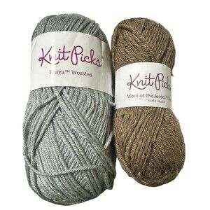 Knit Picks 3 Skeins Brava Worsted 1 Skein Wool of the Andes Tweed 3 Colors (2) Black Brava Worsted, 218 yards, Acrylic; (1) Dove Heather Worsted, 218 yards, Acrylic; (1) Rabbit Heather Tweed, 110 yards, 80% Peruvian Highland Wool & 20% Donegal Tweed