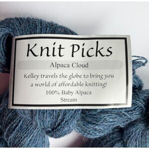 Knit Picks Alpaca Cloud 100% Baby Alpaca yarn. Two hanks with 50 grams / 440 yards each. Lace weight. Hand Wash / Dry Flat. Made in Peru.