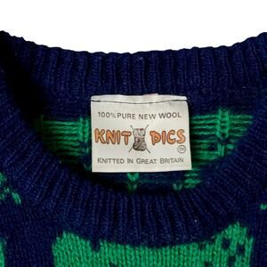 Knit Pics 100% Wool Frog Sweater Pullover Size S Blue Green Long Sleeve Animal