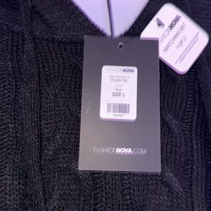 This is a 2 piece fashion nova knit set. Top is a hoodie, knit sweater cropped at the bottom a little. Bottoms are knit. Comes as a set. Womans L.