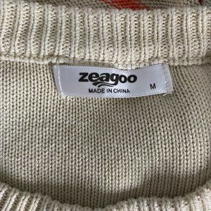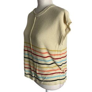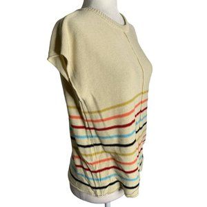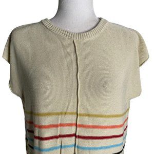 Knit Sleeveless Sweater Vest M Beige Rainbow Stripe Round Neck Pullover