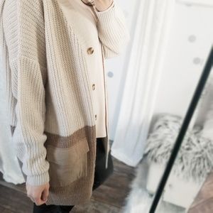 Knit Fall Neutral Cardigan Taupe Color Block Long Pocket Cardigan