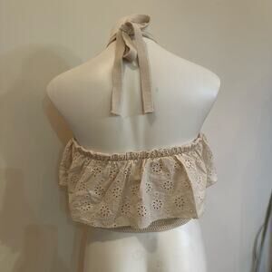 Knit Strapless Cropped Top sz L Eyelet Details cottagecore Whimsy