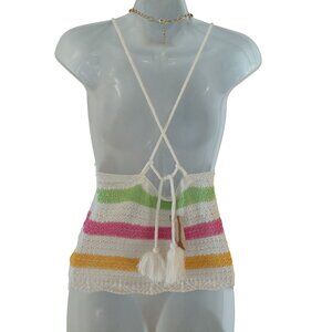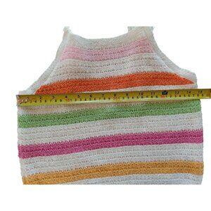 This vibrant knit top features a captivating mix of colors ideal for warm-weather outings. Its lightweight material ensures comfort and breathability, while the playful stripes add a touch of fun to any ensemble. It's versatile enough to pair with various bottoms, making it a staple for casual wear.