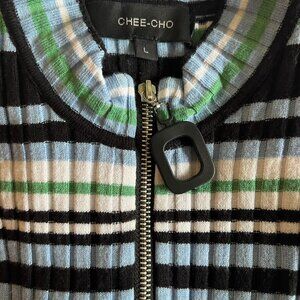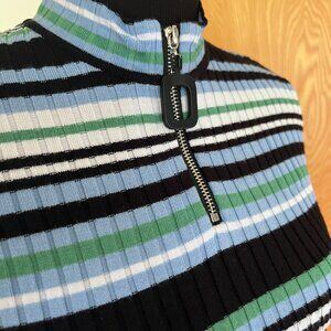 Cozy Knit Sweater Top with a beautiful stripe design in blues and greens. Chunky Half Zipper. Size L, in Great condition only worn once.