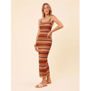 Knit Striped Tank Dress Side Leg Slit Long Ribbed Multicolor Long, Slim