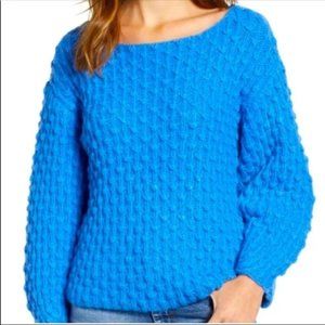 Blue knit studded sweater. For the proper color, refer to the picture where the sweater is on the hanger.