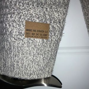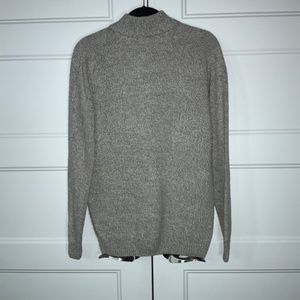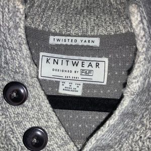 Multi colored grey knit sweater, heavy duty, very warm. False buttons on the collar.