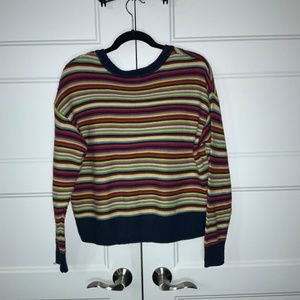 Rainbow multicolor knit sweater, pretty dense and warm, is a cropped sweater, sits right above the hips.