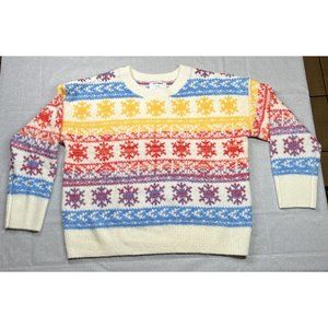 Knit Sweater & Beanie Hat Matching Set Rainbow Colorful Fair Isle PETITE MEDIUM