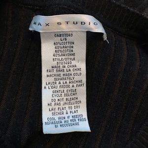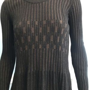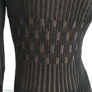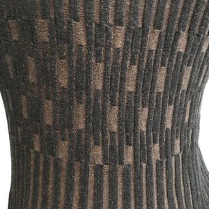Super comfy, pleated knit sweater dress by Max Studio, perfect for a winter night with tights and boots or bare legs and pumps. This cute dress has a knit pattern across the front and back of charcoal gray and brown and pleated knit skirt. Very stretchy and comfortable fabric.
