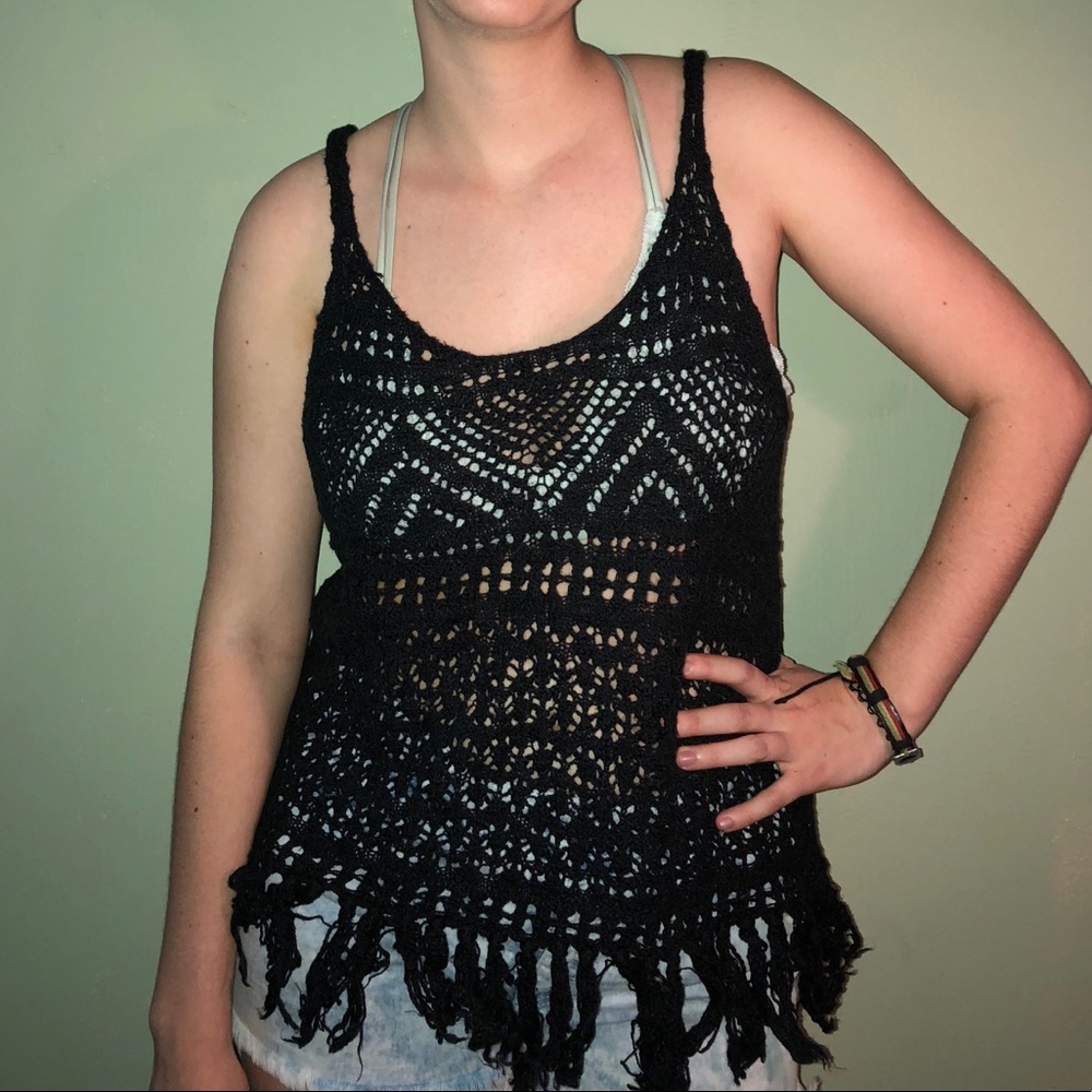 •soft black material •loose knit = lots of holes/very see-through