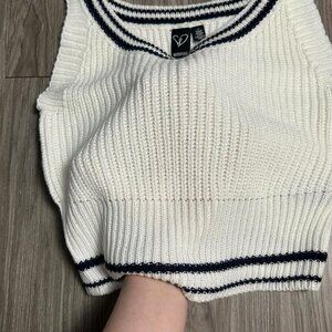 White and blue striped tank top • size small • knitted • slightly sheer • #loungewear #preppy