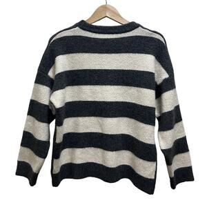 Knit Teddybear 3D Sweater O/S Pullover Striped Gray Cream Fuzzy Cozy Whimsygoth
