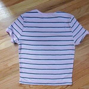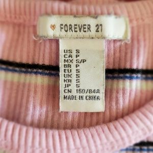 Pink, white & black horizontal stripes donn this super soft Forever 21 knit top. Size - S.