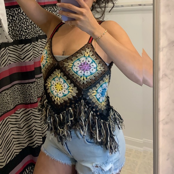 This knit top was handmade in Mexico ! It’s in perfect shape. Gray bottom is not included.