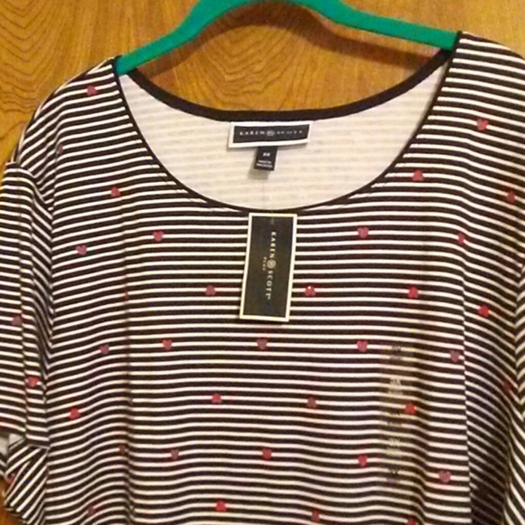This top is so cute. Black & White Stripes with Cute Red Hearts All Over.