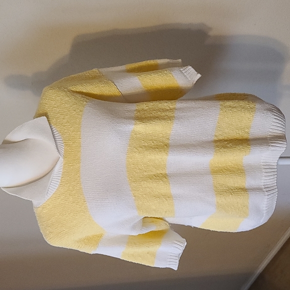 Vintage knit short sleeve top. Yellow and white with collar. No size but fits Medium to Large