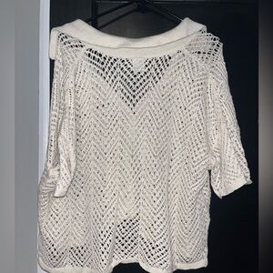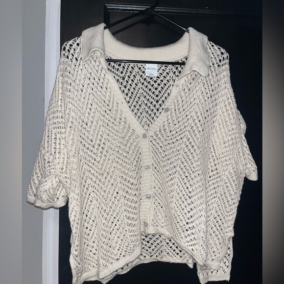 off white knit button down top, no flaws