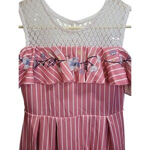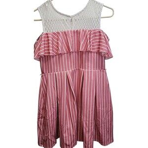 Knit Works Lined fit & flare Floral Ruffle cold shoulder Pink Striped Dress 16