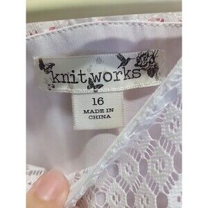 The Knit Works Lined fit & flare Floral Ruffle cold shoulder Pink Striped Dress in size 16 is a stylish and versatile piece suitable for various occasions. The dress features a flattering fit and flare silhouette with a cute ruffle detail on the cold shoulder sleeve. The pink striped pattern adds a pop of color to the knee-length dress, making it a perfect choice for parties, casual outings, or formal events during the summer, fall, or spring seasons. The brand's attention to detail, including embroidered accents and a button closure, ensures a quality product for the modern woman.