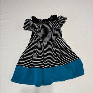 Knit Works Size 10 Girls Striped Black and Blue Kids Dress