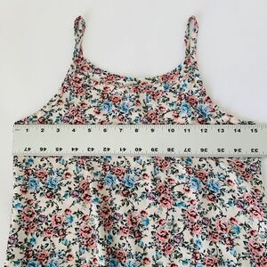 Knit Works Tank Top Girls Large 14 Ivory Pink Blue Floral Peplum Ruffle Preppy