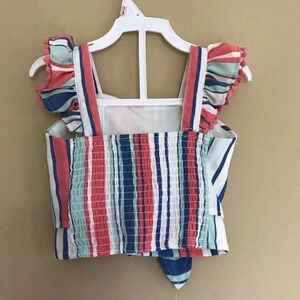Knit Works Girls Size 5 Wide Leg Pants Crop Top Matching Set Striped Pom Pom