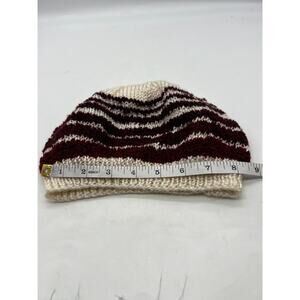 Knit Woven Wide Cream Burgundy Red Stripe Beanie Knit Hat Boho XS