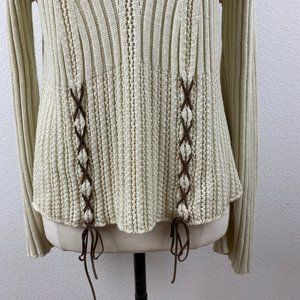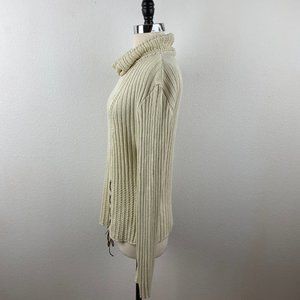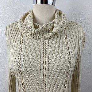 Knit Zone USA Boho Pullover Sweater Natural Rolled Turtleneck Flared Sleeves XL
