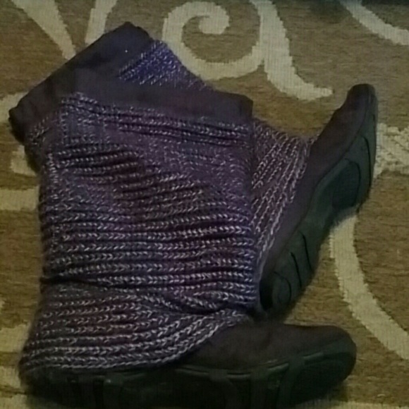 Purple knit and suede boots