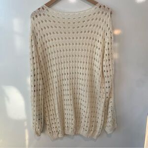 Knit cream long sleeve crotchet sweater with colorful floral sleeves large