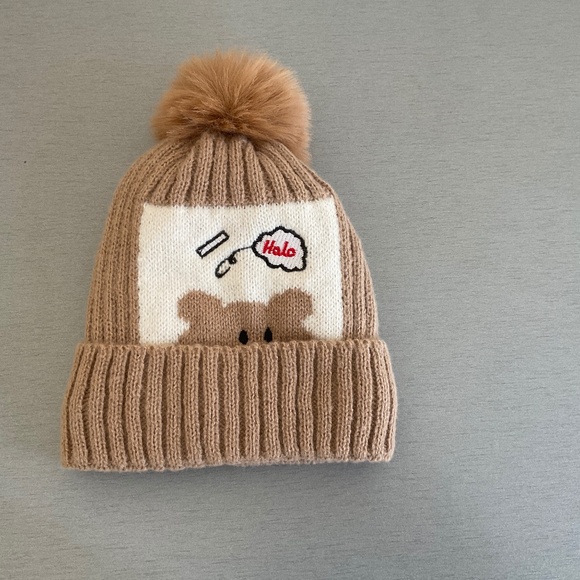 Knit double layer new warm hat with pompon for 2-3 years old boys or girls