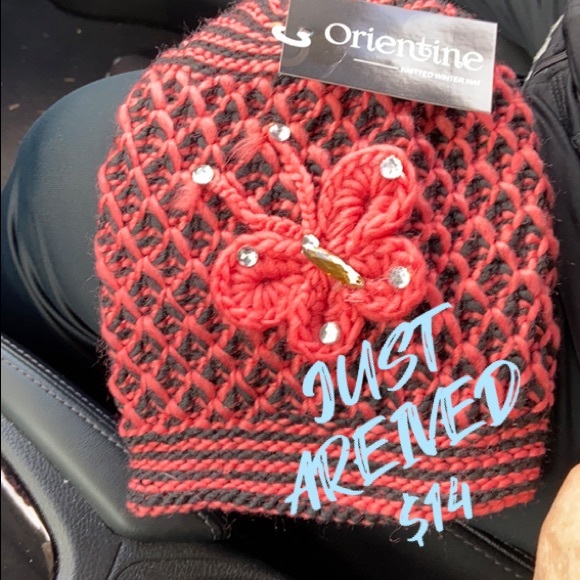 NWT knit hat with butterfly embellishment one size fits all