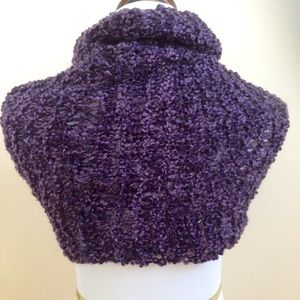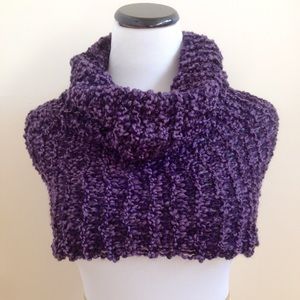 Chunky knit infinity wrap in gorgeous eggplant color. Can also be worn as a cowl-neck shrug. Machine wash (no dry cleaning!). NWOT. Perfect for fall weather!