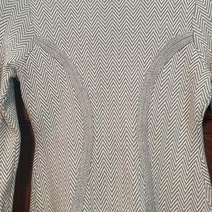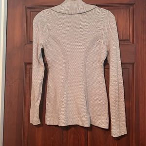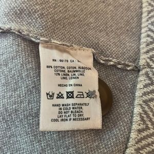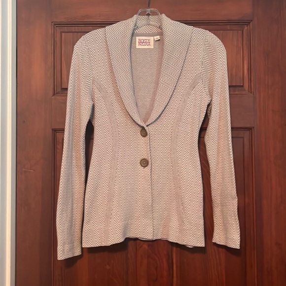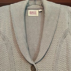 Rosie Neira for Anthropologie. Unlined, taupe and off-white, herringbone jacket with decorative stitching in front and back hem hits at the hip.
