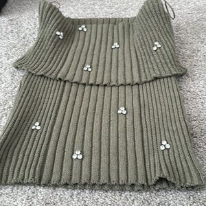 Zara knit off the shoulder with rhinestone beads new with tag size M .