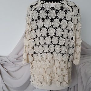 Crochet type pullover. 3/4 sleeves. Great over a Maxi dress! XXL but fits more like an XL. Excellent condition.