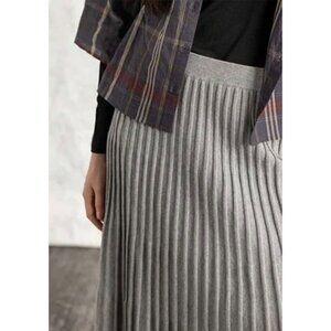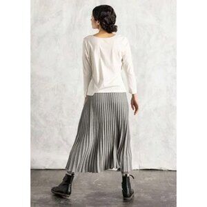 Pleated skirt with a touch of volume at the hem. The knit skirt is available solid-colored and striped with an accent color. Smooth waistband with comfortable elastic.