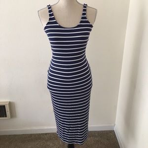 Stretch rubbed knit stripe sleeveless dress. Scoop neck.