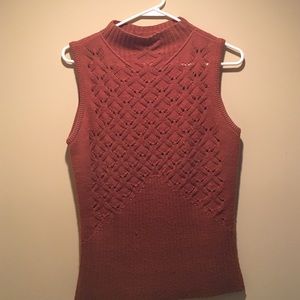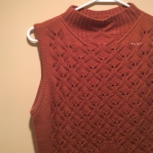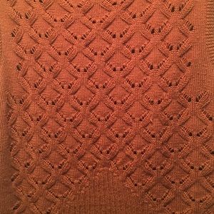 Burnt orange in color. High neck. Beautiful pattern work. 100% wool.