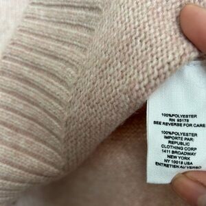 knit sweater - in light pink - size Medium - in good condition - slits on the sides - ribbed at cuffs and waist