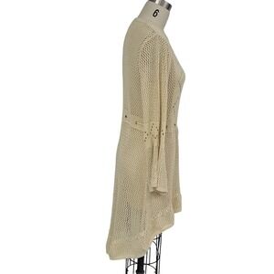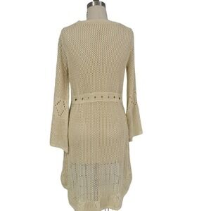 Knit swimsuit cover up 100% polyester cream color with draw string.