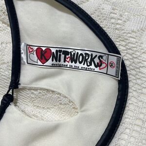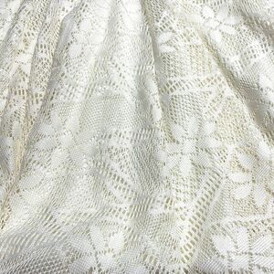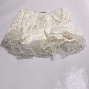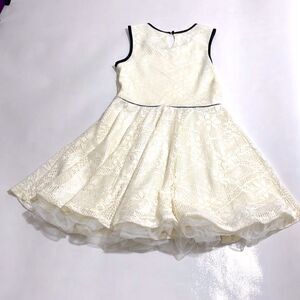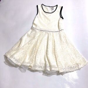 KnitWorks Girls Lace Dress - Size (14) Creamy white dress with lace overlay, black lined detail, side zipper, button neck, fully lined with ruffled bottom. Good Condition with normal wear