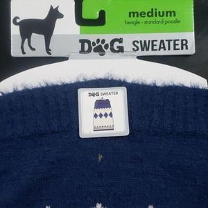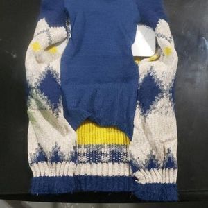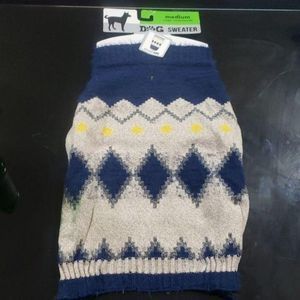 Medium knit tan blue yellow aztec diamond striped dog sweater for beagle standard poodle 17 to 22 inches long dog
