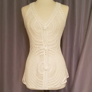 Sophisticated ivory button down vest/tank. Knit covered buttons. Very versatile item. Can be casual or dressed up.