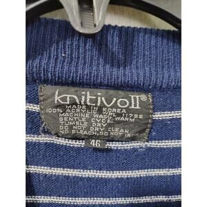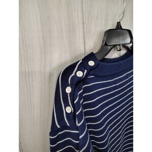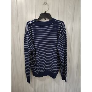 Knitivo II Women's Knit Sweater Striped Top Blue Button Shoulder Size 46