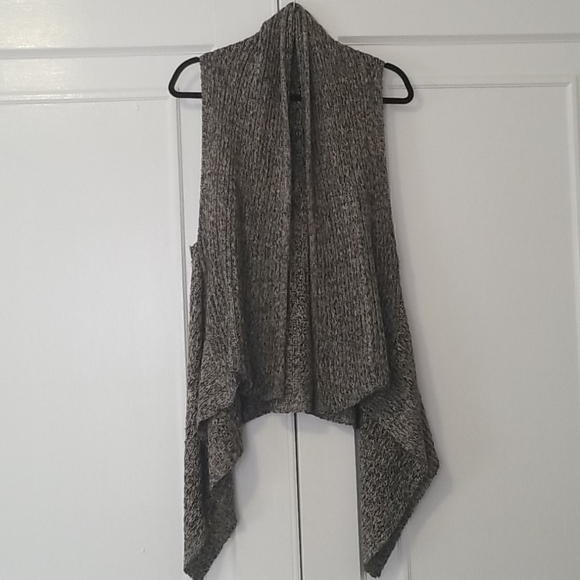Cardigan vest from The Paper Store. 100% acrylic. Uneven hemline with draped front, no buttons or closures. Neutral color!