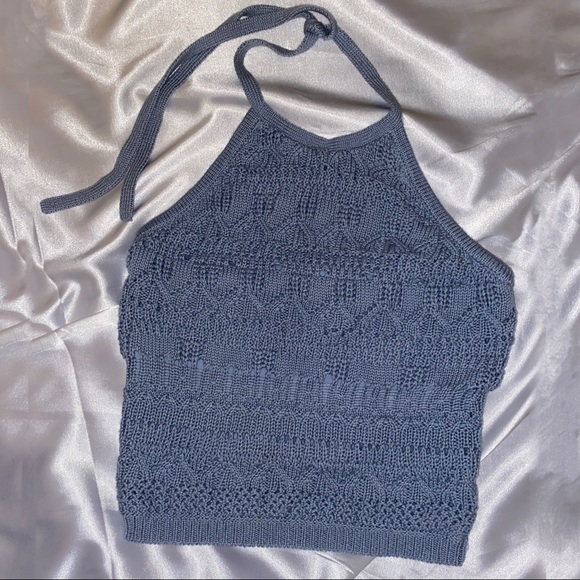Cute Baby Blue Crop Top •knitted •ties around the neck •never worn